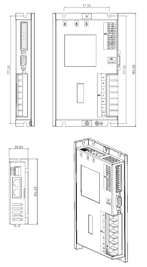 (3)伺服支持位置/速度/扭矩三闭环控制,电流环带宽最高可达3.2kHz,速度环带宽高于200HZ;